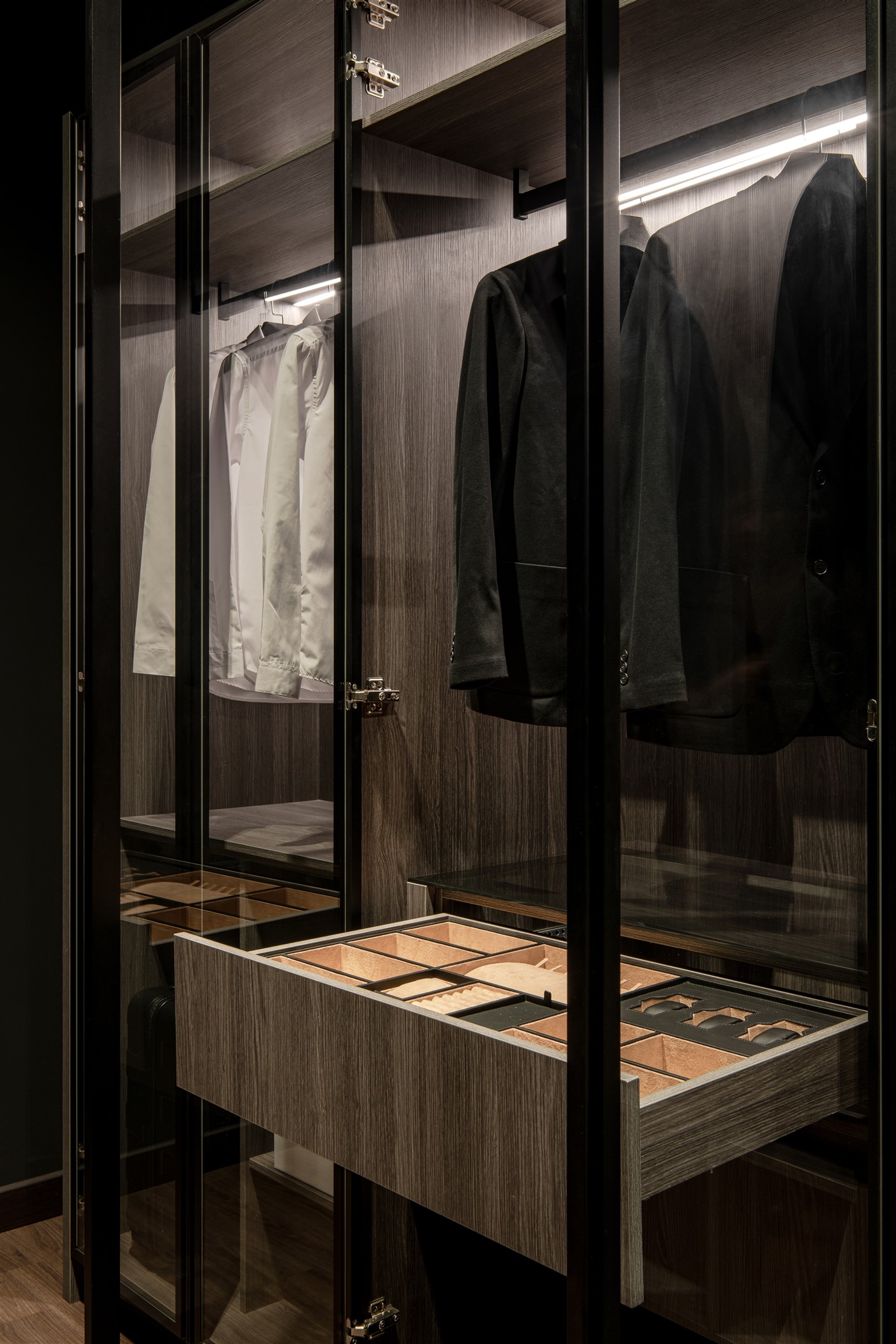 A class that redefined exclusive. More than a closet system, a fully integrated storage area with the highest sophistication.